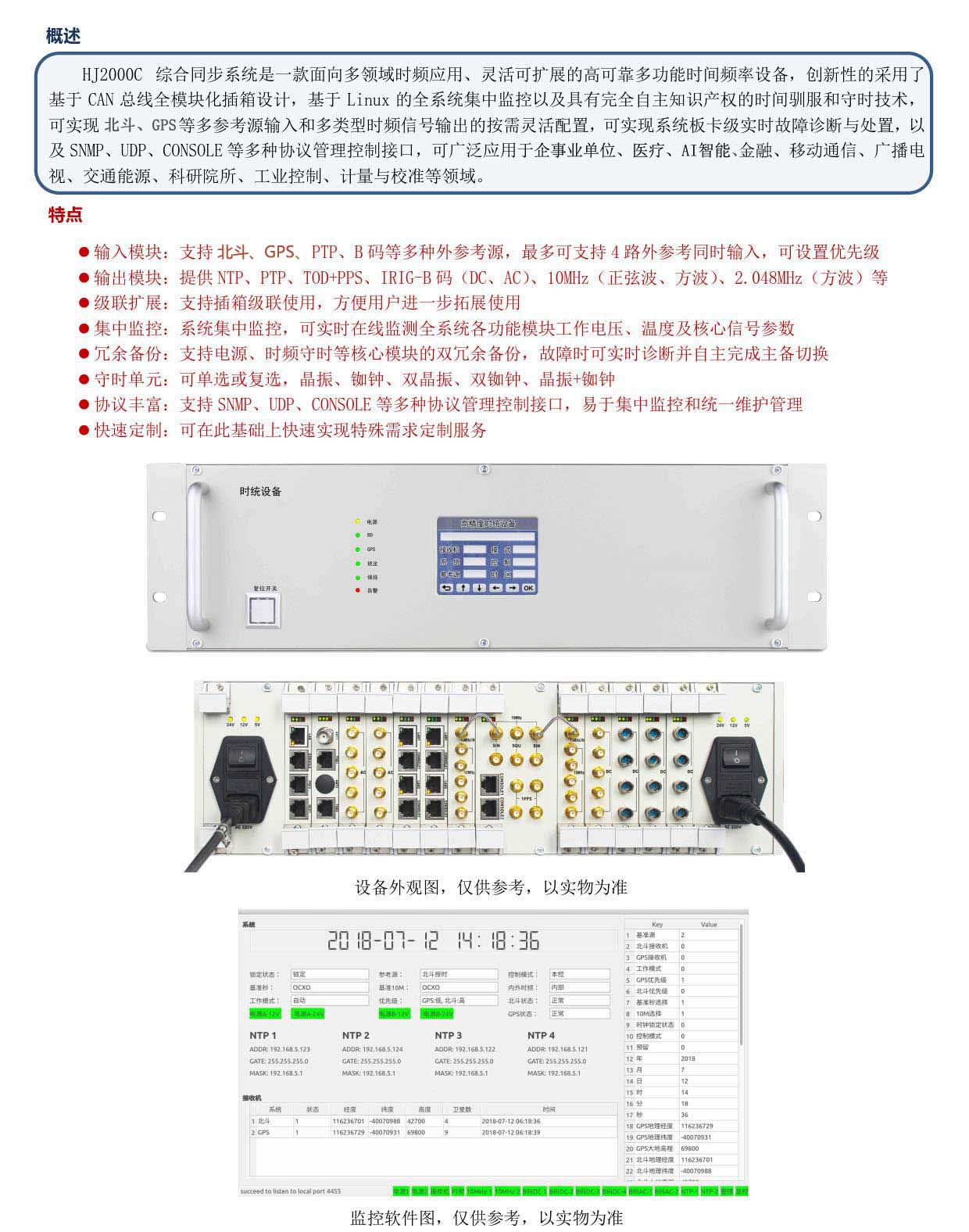 • HJ2000C 綜合同步系統是一款面向多領域時頻應用、靈活可擴展的高可靠多功能時間頻率設備,創新性的采用了基于CAN總線全模塊化插箱設計,基于Linux的全系統集中監控以及具有完全自主知識產權的時...